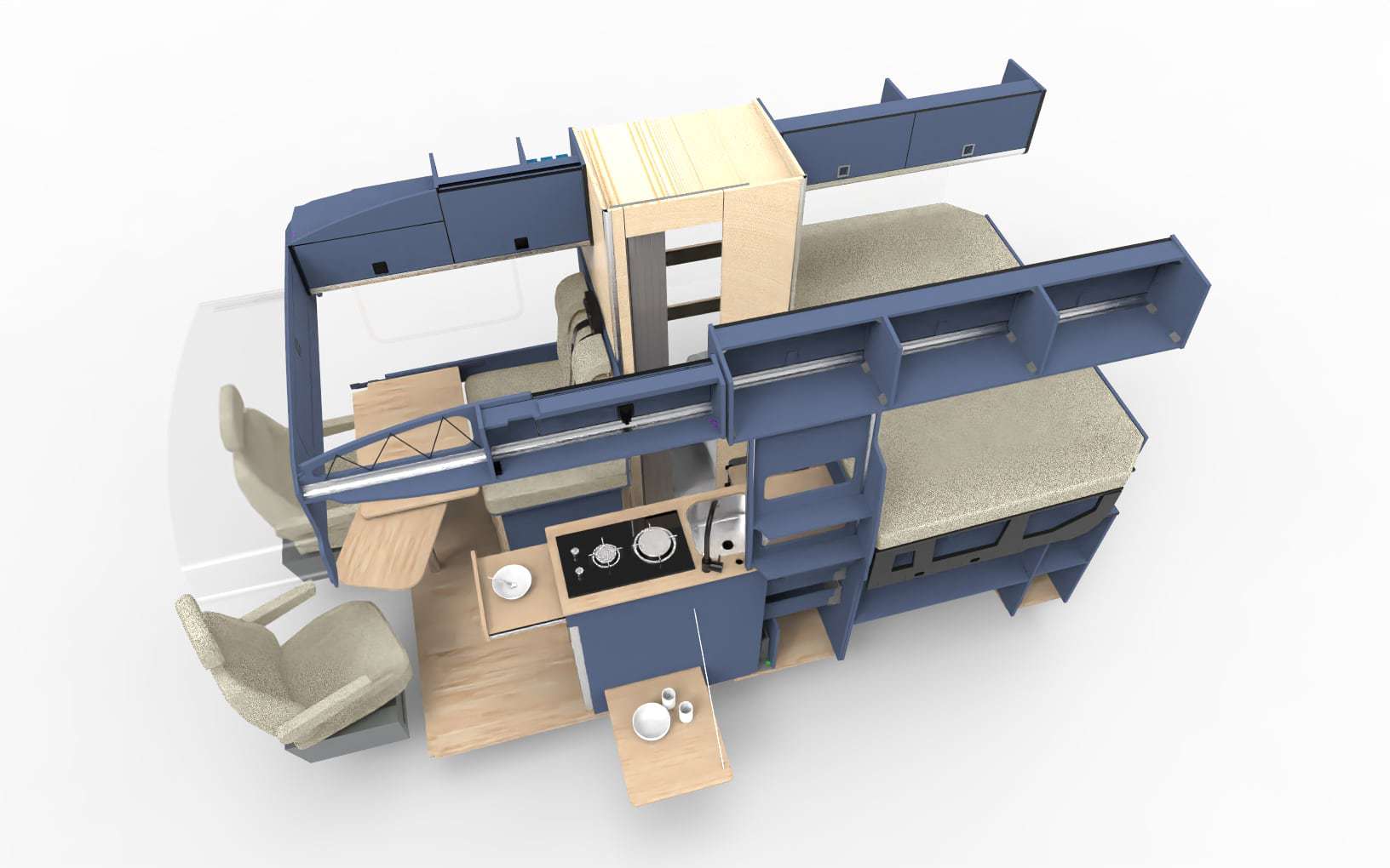 Transform your FORD TRANSIT MK8 L3H3 into a fully functional camper with our Complete Furniture Kit. This all-in-one package includes everything you need from us to complete your van’s interior conversion, ensuring a professional-quality finish. Designed for experienced DIYers and professional converters, the kit comes flat-packed for easy transport and can be delivered directly to your door, ready for assembly.
