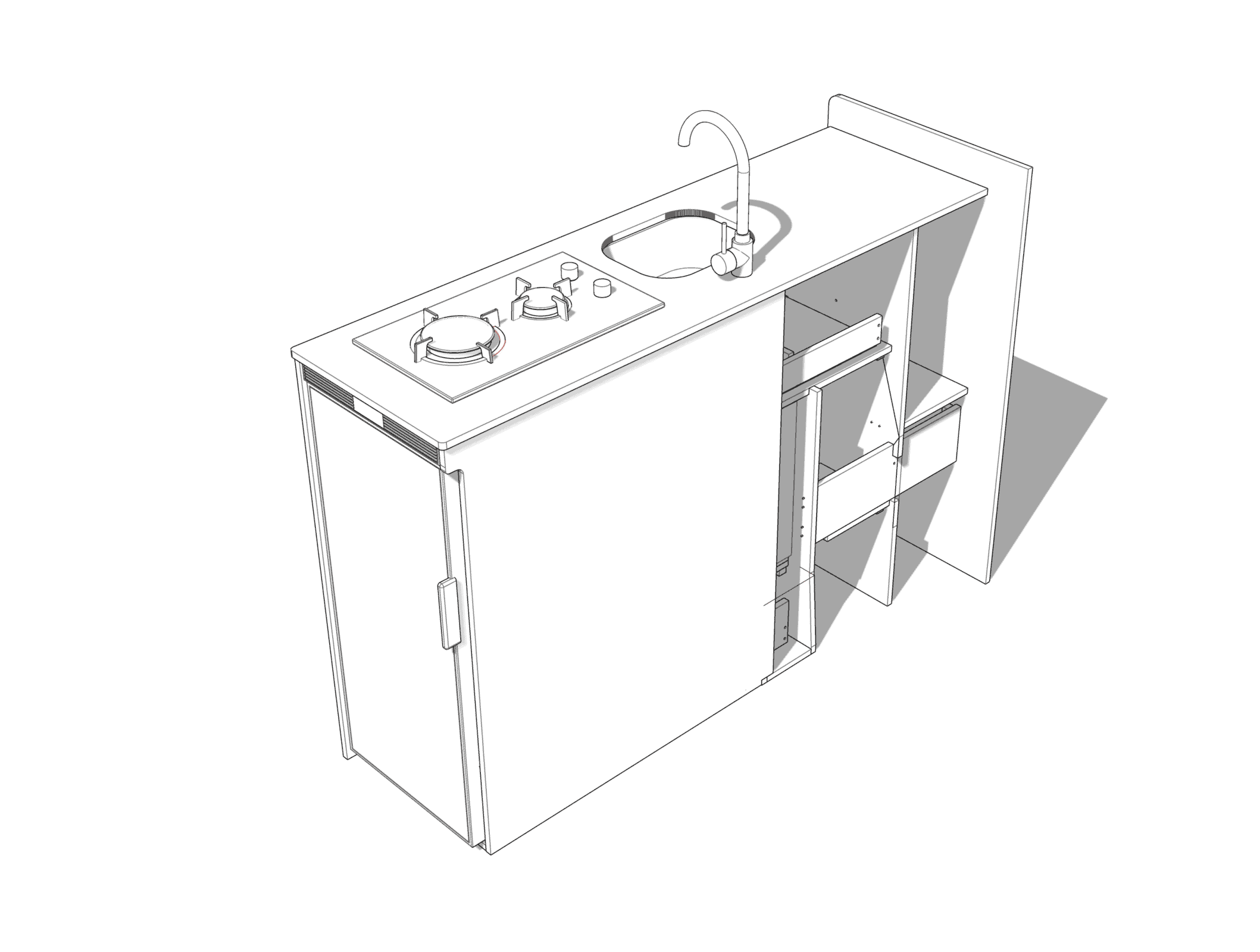 EVO V8 Side door kitchen pod for large vans. This pod sits on the side loading door.