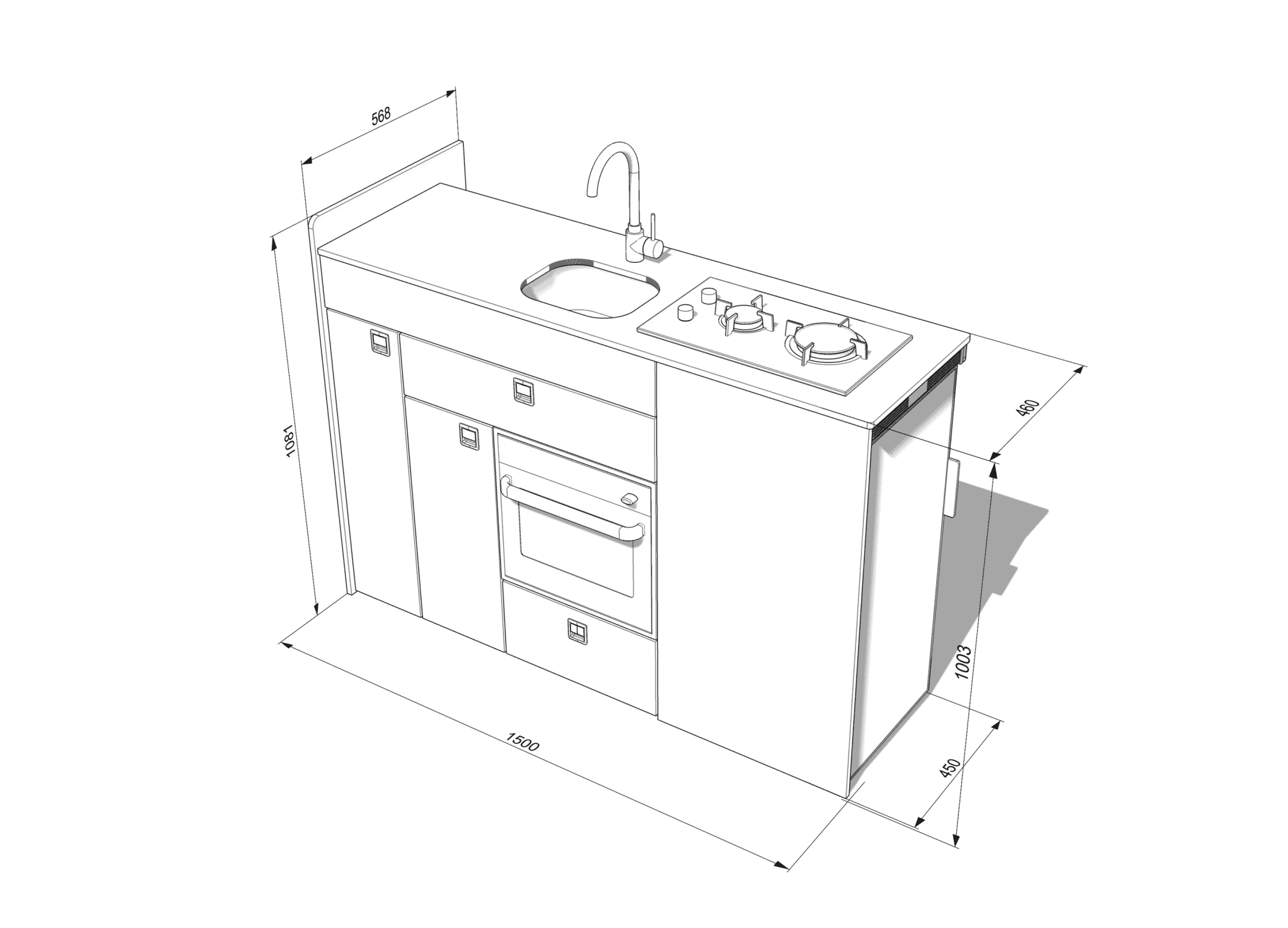 EVO V8 1500mm + OVEN – LARGE VANS Side door kitchen pod