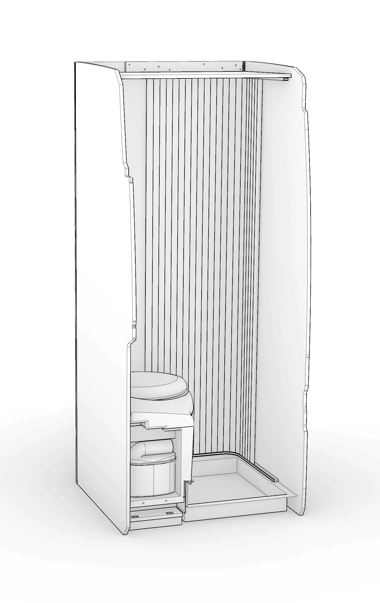 Alternatively our universal shower tray C can be used with a portable toilet or composting toilet for a simpler installation. Please note the door opening is 393mm so please check your portable toilet or composting toilet will fit through the opening.