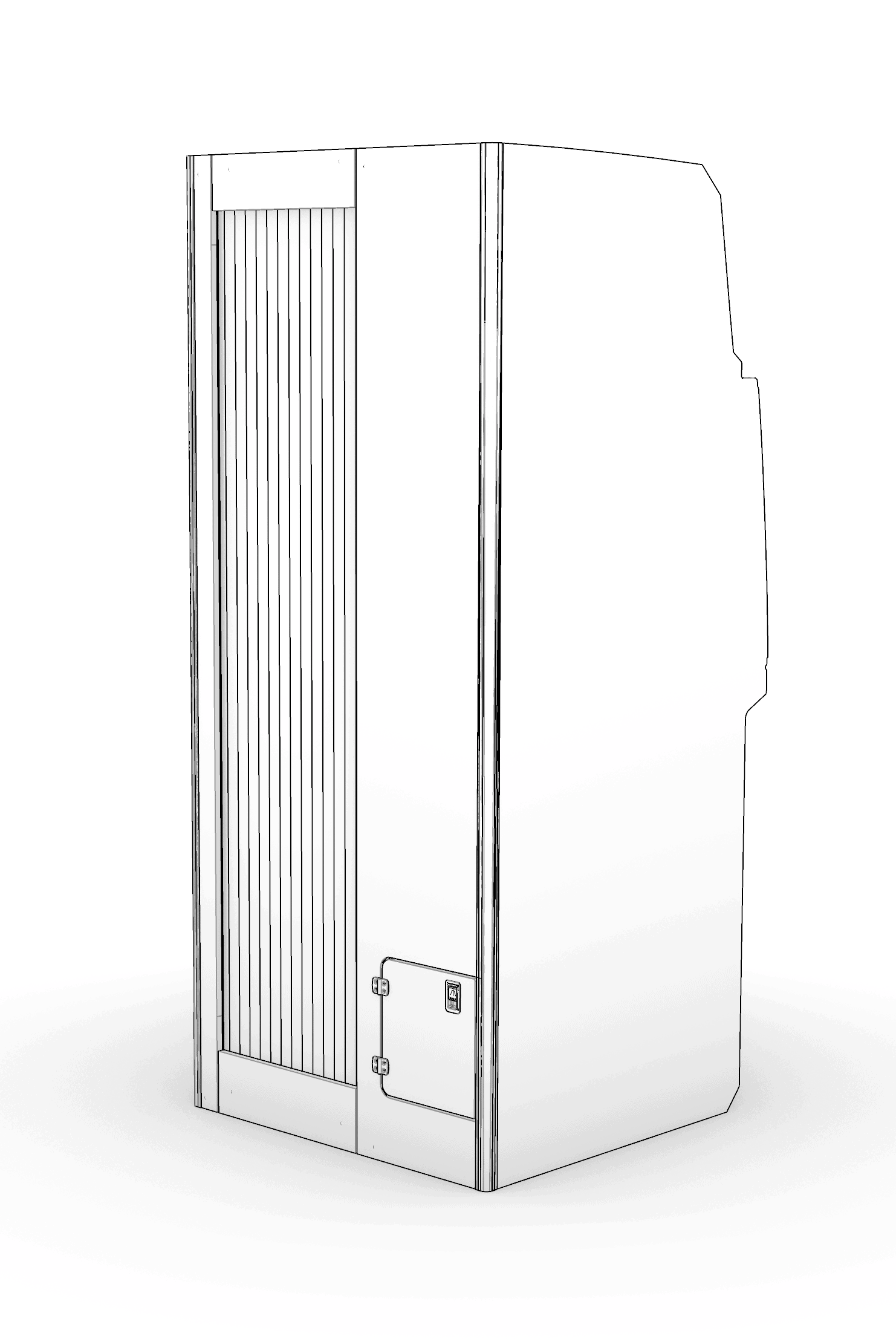 - Removable from the outside the van which requires cutting a door into the van body (no interior door will be cut)