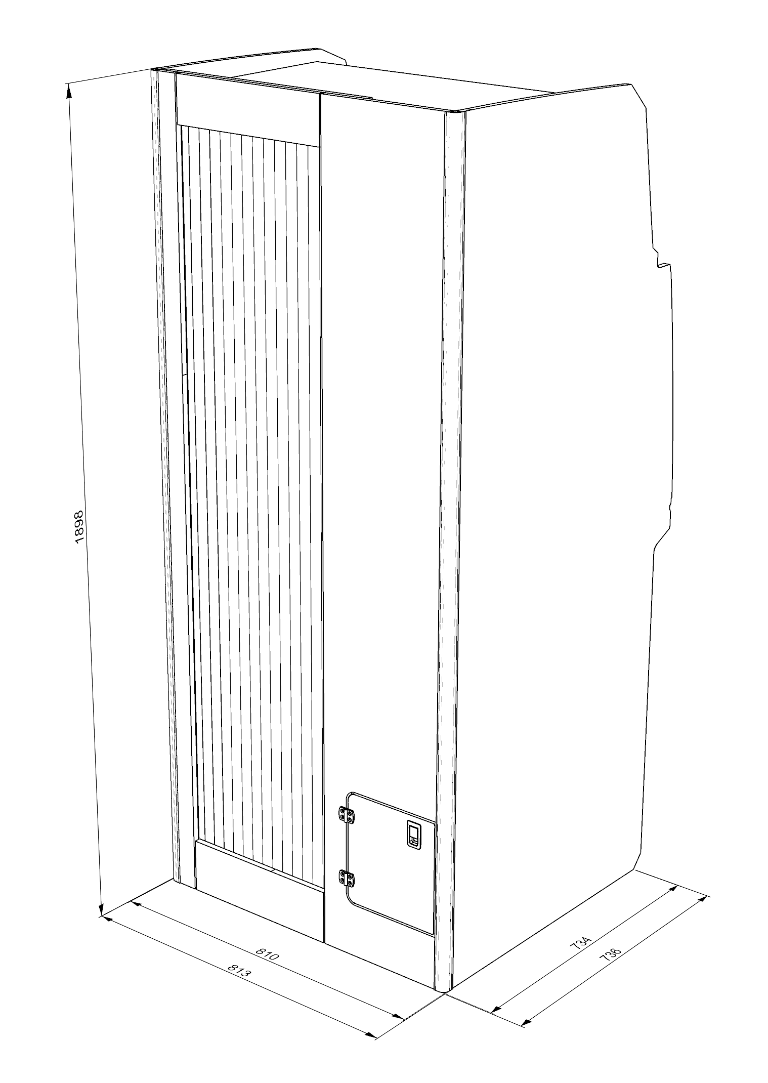 SHOWER C – EXTERNAL DIMENSIONS – 734mm deep x 810mm wide – height 1898mm